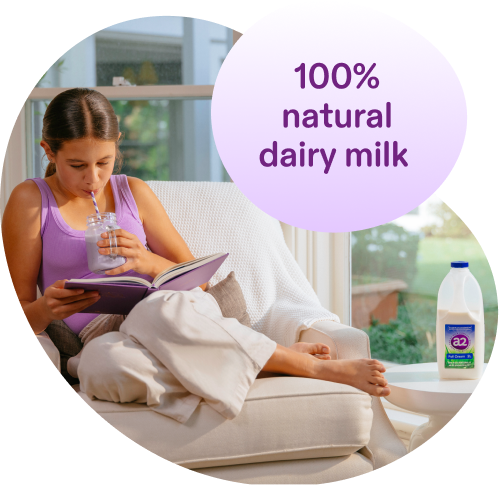 Some people experience digestive issues when drinking ordinary milk containing A1 protein. a2 Milk® naturally contains only A2-type protein and as a result, some people who find that they experience digestive discomfort with ordinary milk, may be able to enjoy a2 Milk®.*