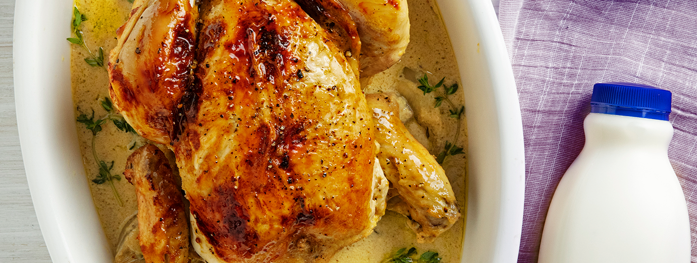 While the chicken is browning, whisk together the Dijon mustard, mustard powder, a2 Milk® Full Cream, and chicken stock in a large jug until combined.