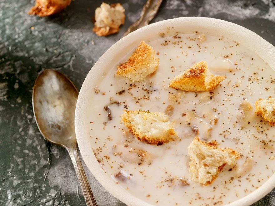 While the soup is reducing, whisk together the milk and flour in a bowl until smooth. Pour the mixture into the soup and continue to cook the soup for 8-10 mins or until the soup thickens, stirring as required.