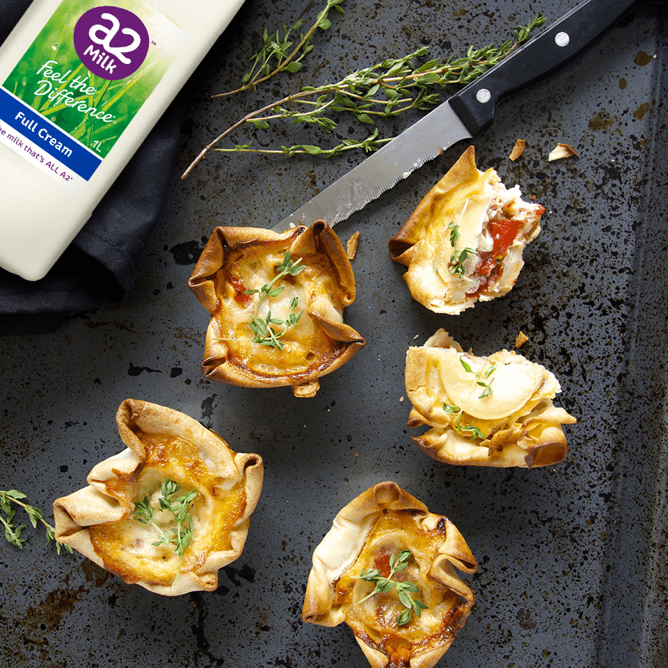 Bake blind for 8 minutes then remove from the oven to cool. Whilst the pastry is cooling, whisk together eggs and a2 Milk® Full Cream to form a smooth mixture.